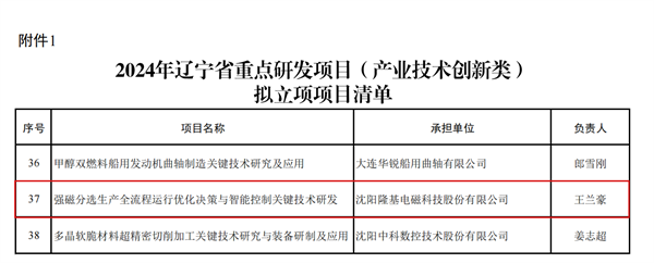 “強磁分選生產全流程運行優化決策與智能控制關鍵技術”研發項目,正式獲批遼寧省重點研發項目