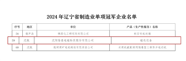 沈陽隆基磁選設備入選《2024年遼寧省制造業單項冠軍》 2024-11-13