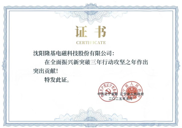 2025年5月13日,遼寧省企業大會在省政府隆重召開。沈陽隆基電磁科技股份有限公司作為沈撫改革創新示范區唯一入選企業,憑借在全面振興新突破三年行動攻堅之年作出的突出貢獻受到省委省政府表彰,公司董事長張承臣作為企業代表現場接受表彰。